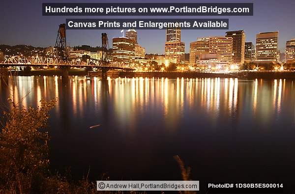 Portland Cityscape, Willamette River, Hawthorne Bridge, Dusk