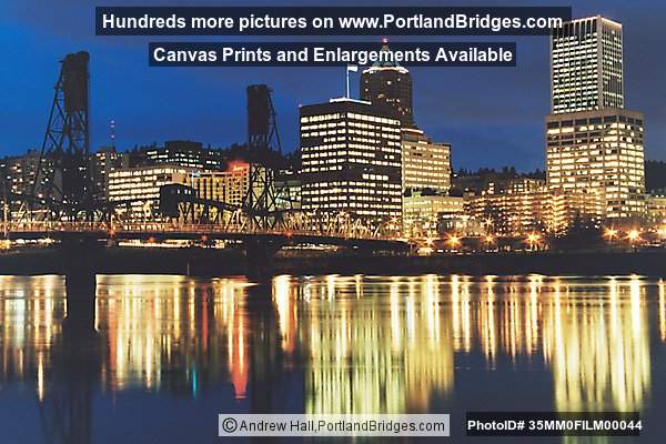 Hawthorne Bridge, Portland Skyline, Reflections, Dusk