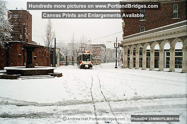 MAX Train in Snow, Rose Quarter, Steel Bridge