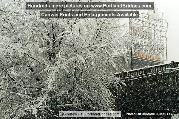 Portland, Oregon Sign, Waterfront Blossoms, Looking Up (2)