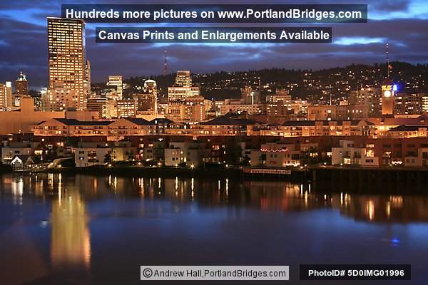 Portland Cityscape, Willamette River Reflections, Dusk (2)