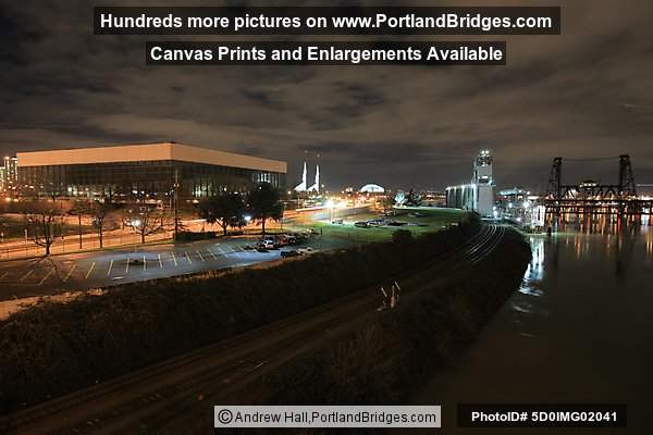 Memorial Coliseum, Portland, Steel Bridge, Dusk