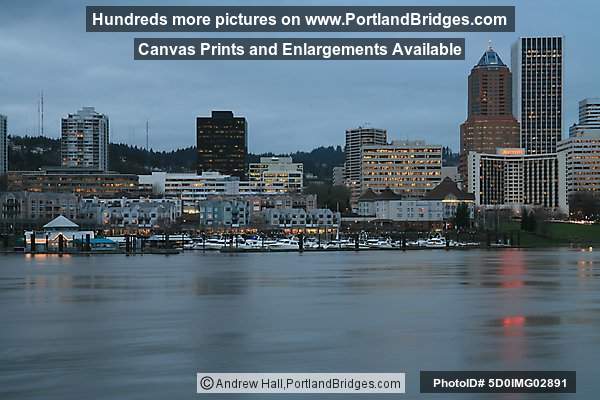 Riverplace and Portland Center Apartments, Willamette River, Dusk