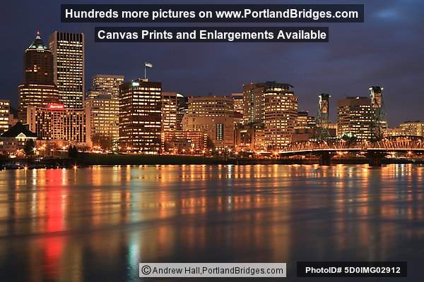Portland Cityscape, Willamette River Reflections, Dusk (2)