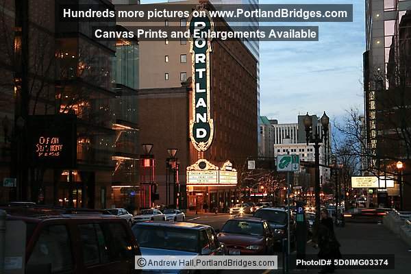 Schnitzer Portland Sign at Night, Broadway, Heathman Hotel