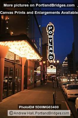 Schnitzer Portland Sign at Night, Broadway, Heathman Hotel