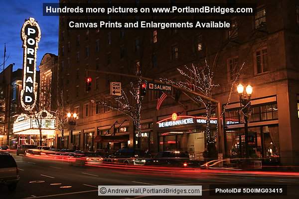 Schnitzer Portland Sign at Night, Broadway, Heathman Hotel (2)