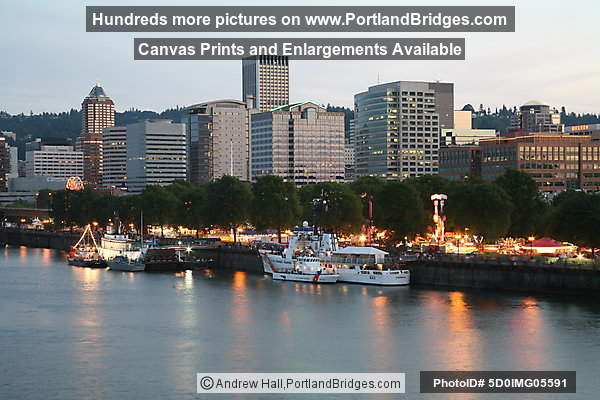 Rose Festival Ships, Steel Bridge, Willamette River, Dusk