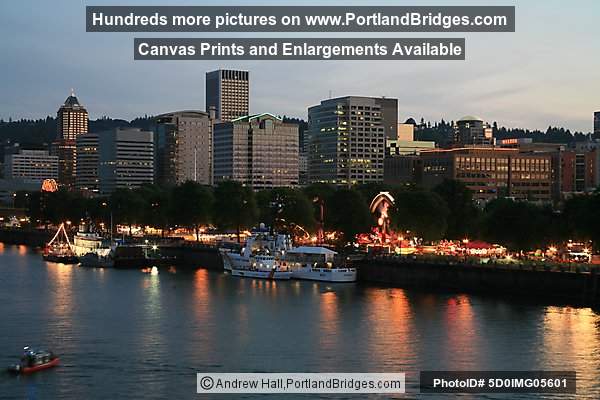 Rose Festival Ships, Steel Bridge, Willamette River, Dusk