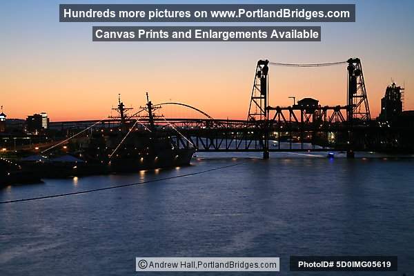 Rose Festival Ships, Steel Bridge, Willamette River, Dusk