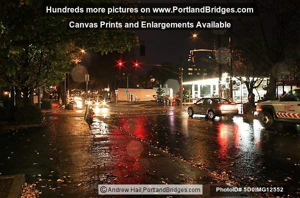 Portland, West Approach of Hawthorne Bridge, Rain, Dusk