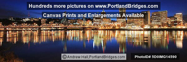 Steel Bridge, Portland Downtown Panorama, Dusk