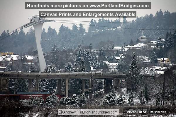 Portland Aerial Tram, OHSU, South Waterfront, in the Snow