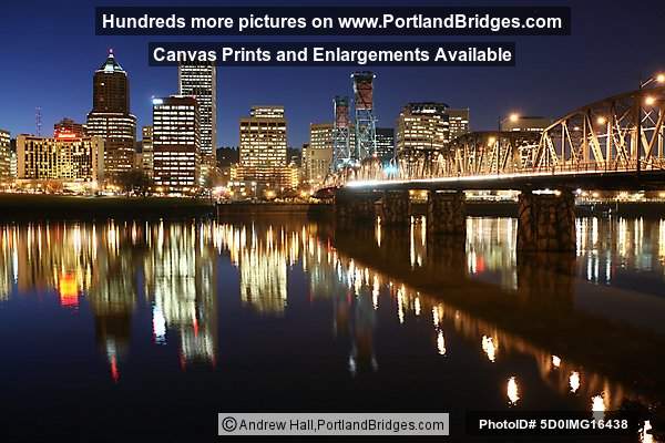 Portland Cityscape, Dusk, Reflections, Steel Bridge