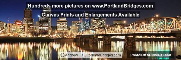 Steel Bridge, Portland Downtown Panorama, Dusk