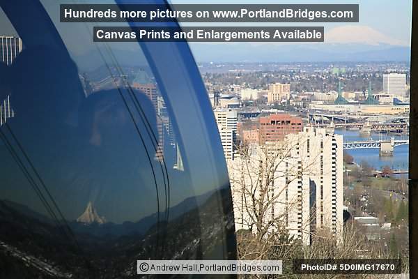 Mt. Hood reflection on Tram, with Mt. St. Helens