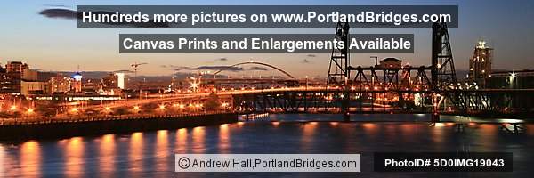 Steel Bridge, Portland Downtown Panorama, Dusk