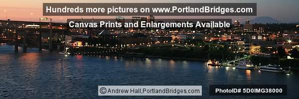 Portland Cityscape Panorama, Hawthorne Bridge, Dusk