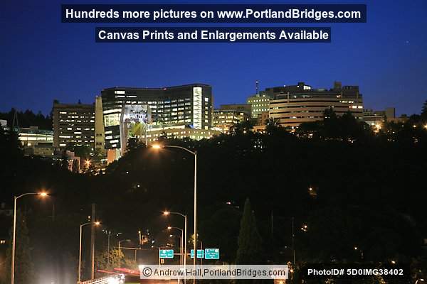 Marquam Bridge, OHSU, viewed from I-5 approaching Marquam Bridge