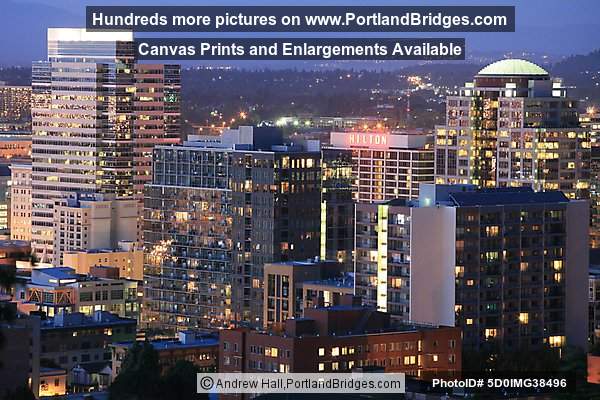 US Bancorp Tower, Fox Tower, Oregon Convention Center, Portland, Dusk