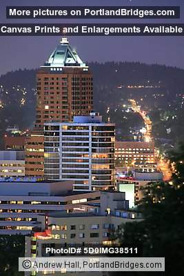 US Bancorp Tower, Fox Tower, Oregon Convention Center, Portland, Dusk