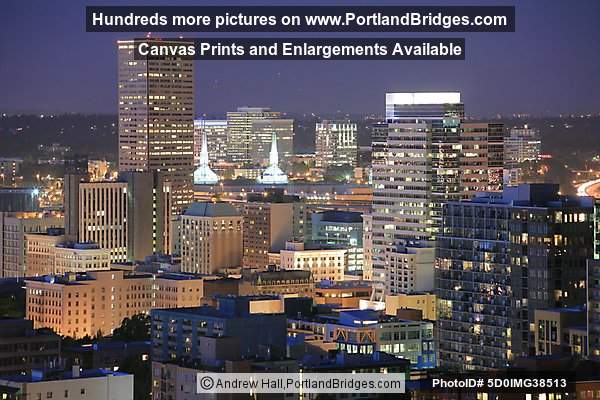 US Bancorp Tower, Fox Tower, Oregon Convention Center, Portland, Dusk