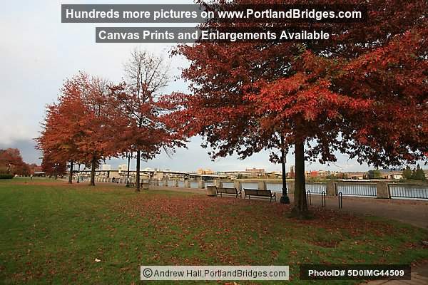 Tom McCall Waterfront Park, Fall Leaves, Morrison Bridge
