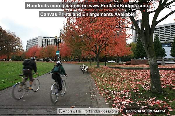 Tom McCall Waterfront Park, Fall Leaves, Cyclists