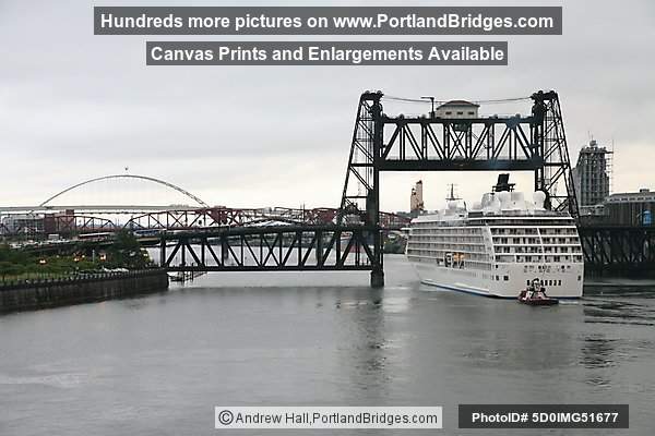 The World, Sailing through Steel Bridge, from Portland, Oregon, June 19, 2009