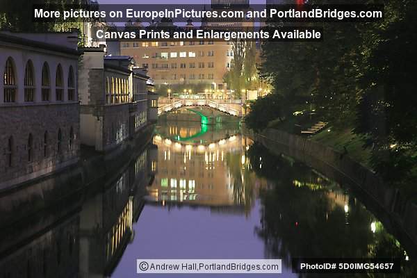 Ljubljana Triple Bridge at Dusk, reflections (2)