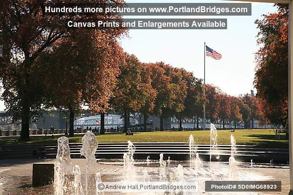 Tom McCall Waterfront Park, Fountains, Fall Leaves
