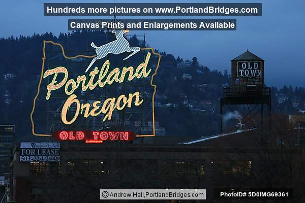 Portland, Oregon Sign, Old Town, Dusk (3)