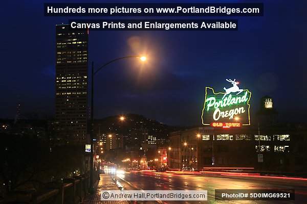 Schnitzer Portland Sign at Night, Broadway, Portland, Oregon