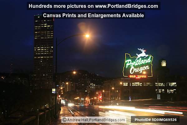 Portland, Oregon Sign, US Bancorp Tower, Light Streaks, Burnside Bridge