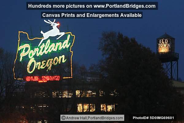 Portland, Oregon Sign, Old Town, Dusk (3)