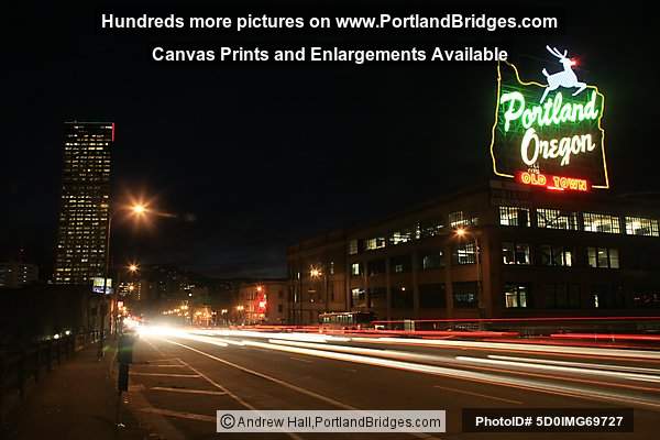 Portland, Oregon Sign, US Bancorp Tower, Light Streaks, Burnside Bridge (2)