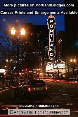 Hollywood Theatre, Sandy Blvd, Night, Portland