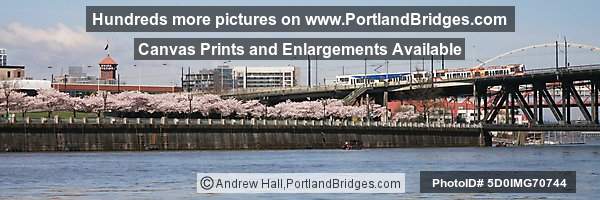 Steel Bridge with Waterfront Blossoms and MAX Train