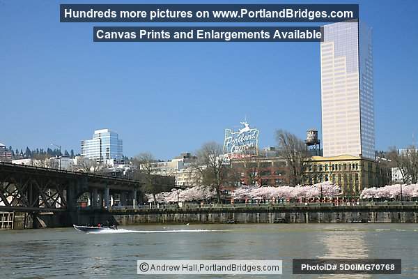 Portland, Oregon Sign, Waterfront Blossoms (2)