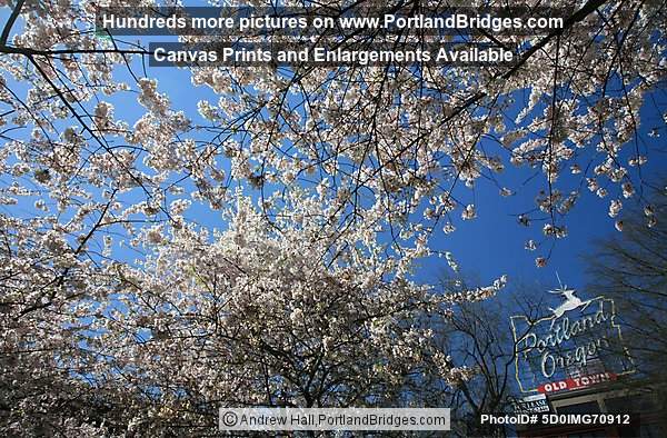 Portland, Oregon Sign, Waterfront Blossoms, Looking Up (2)