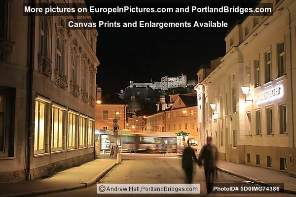 Salzburg, Austria Old Town, River, Hohensalzburg Fortress, Dusk