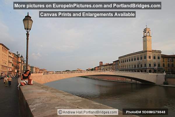 Ponte di Mezzo, Torre dell'Orologio, Dusk, Pisa, Italy