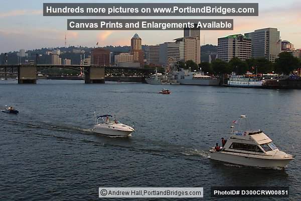 Boats, view of Downtown Portland from Eastbank Esplanade