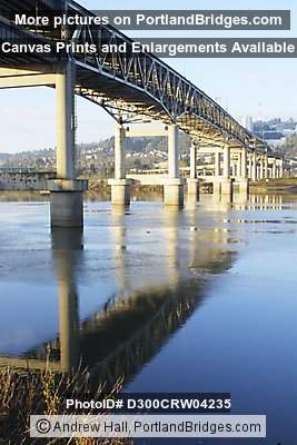 Marquam Bridge, Dusk, Clouds, Willamette River Reflections