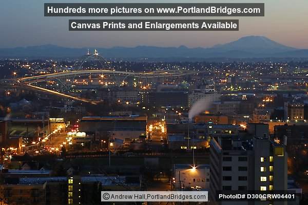 Fremont Bridge, Mt. Saint Helens, Dusk