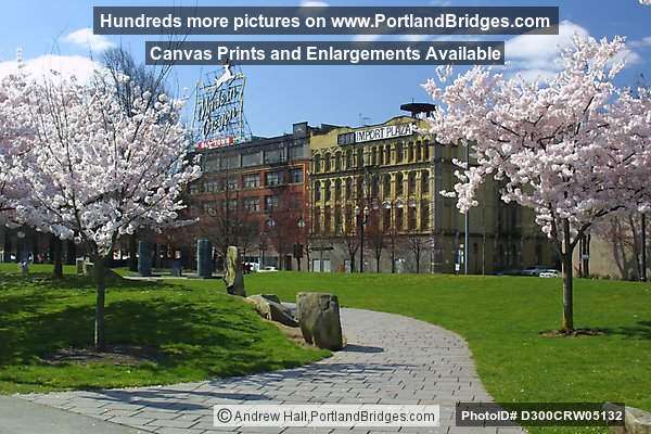 Portland, Oregon Sign, Waterfront Blossoms (2)