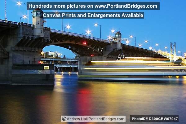 Willamette River, Burnside Bridge, Moving Ship, Dusk