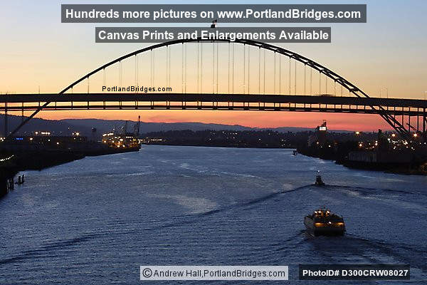 Fremont Bridge, Dusk, Orange Sky, Boat Passing