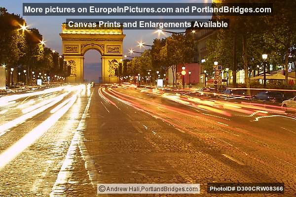 Avenue des Champs-Élysées, Car Light Streaks, Arc de Triomphe, Paris