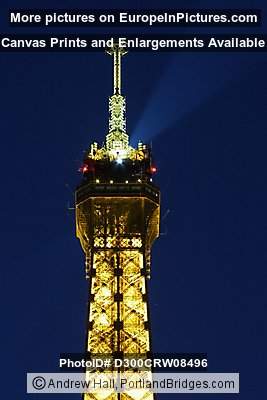 Eiffel Tower (top), Paris, Dusk, Lighted